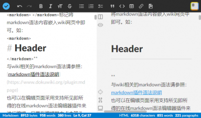 但是别忘了编辑完回到wiki编辑器时将所编辑的内容用<markdown> </markdown>标记包含。