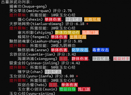 ps:男古墓在出玄铁剑法pfm前可作为主要内功,其yun yihun会使你的战斗难度陡然下降!!但由于九阴基本上只能学到201级,之后想要继续提升只能消耗大量潜能去修炼,十分艰难!总的来说,古墓不适合男角色!!